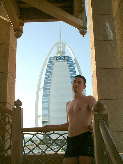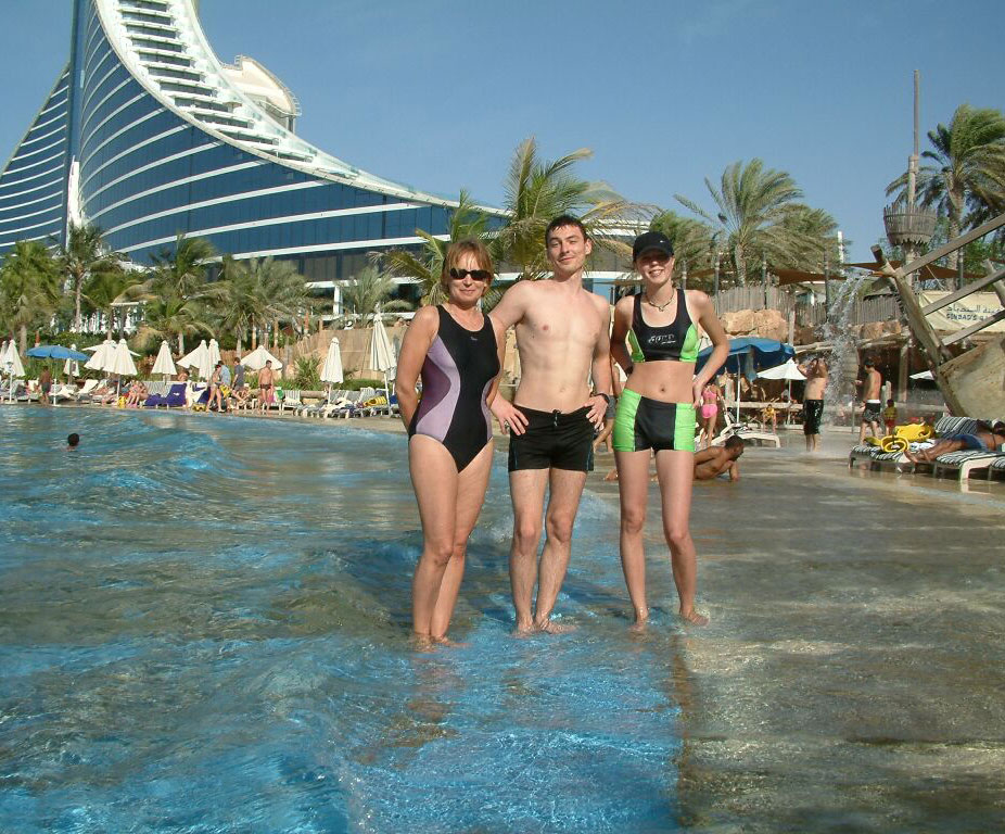 Ewelinka, her Mother and me. :) Jumeirah hotel in background. View from Wild Wadi.